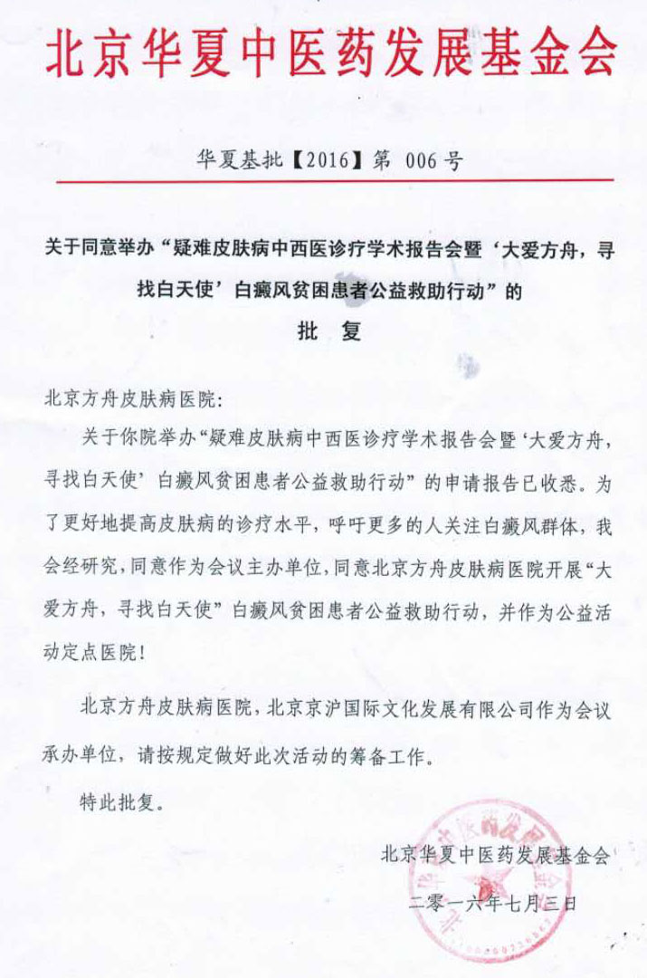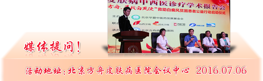 “北京方舟皮肤病医院将全力支持五大电视台发起的“大爱方舟,寻找白天使”救助活动,因为生命健康权是一个人最基本的权益,但是看到那么多白癜风患者特别是贫困白癜风患者被疾病折磨而又束手无策,作为医生我感到非常的痛心。孩子是祖国的花朵,但是白癜风却让众多孩子的生活失去了色彩,我作为专业研究与治疗白癜风的医生,我一定会尽我最大的努力,也有责任、有信心用我们的医术帮助他们重新拥有多彩的人生!同时也我也愿意接受各位领导和媒体朋友们以及社会的监督,让我们把这项公益活动做的更好。”